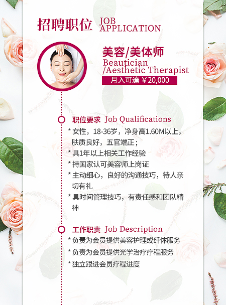 為學院提供專業(yè)系統(tǒng)的多方位培訓,注重服務意識和實踐能力的培養(yǎng)。并優(yōu)先向思妍麗集團推薦聘用優(yōu)秀學員。十多年來已累計向社會輸送近萬名*優(yōu)秀美容師。(*數(shù)據(jù)來源于思妍麗職業(yè)技術培訓學校內(nèi)部)